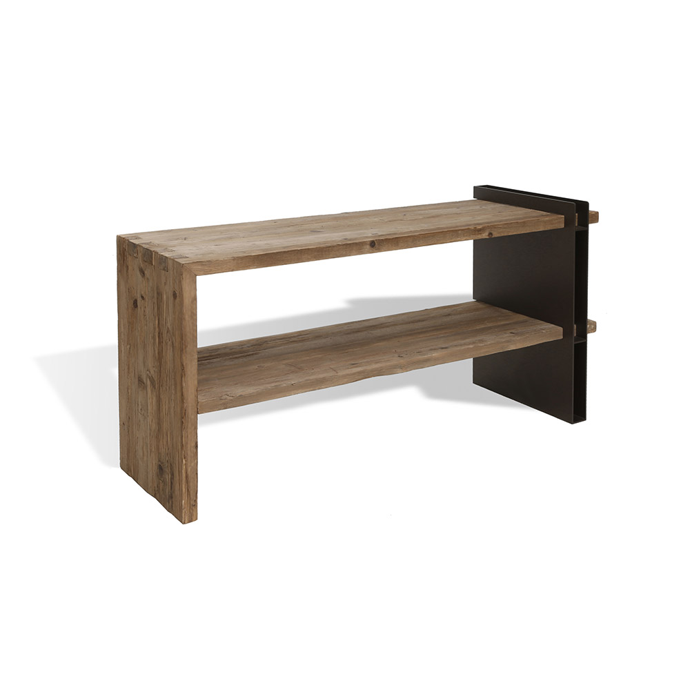 La Consolle modello Double Industrial, con due ripiani, realizzata con legno vecchio di abete e ferro, รจ un capolavoro di design minimalista che si inserisce perfettamente nel contesto delle case di montagna, pur con un tocco decisamente moderno e industriale. Questo mobile combina la calda autenticitร del legno vecchio di abete con la robustezza e la modernitร del ferro, offrendo un pezzo di arredamento sia funzionale che esteticamente accattivante.
