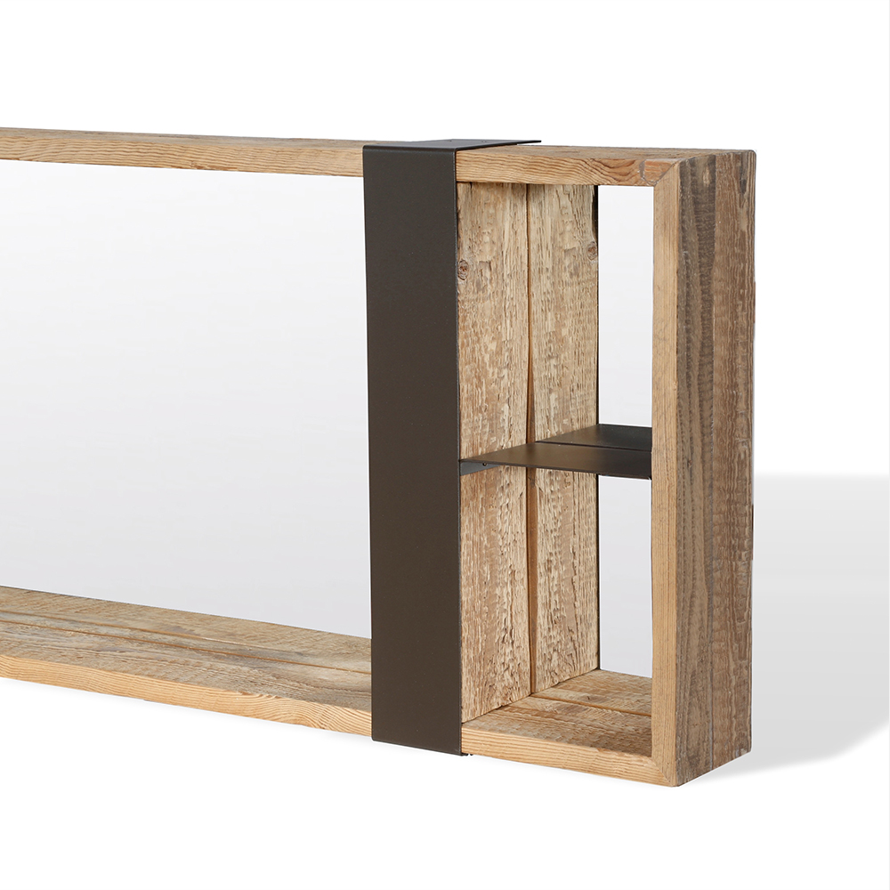 Lo Specchio con mensola Mod. Industrial rappresenta un’incantevole fusione di design minimal e lineare con la calda autenticità dei materiali naturali. Realizzata con attenzione e cura, la cornice di questa specchiera è prodotta utilizzando abete vecchio di recupero, un legno che non solo conferisce robustezza e durata nel tempo, ma porta con sé una storia unica, raccontata attraverso le sue venature e la sua patina naturale.