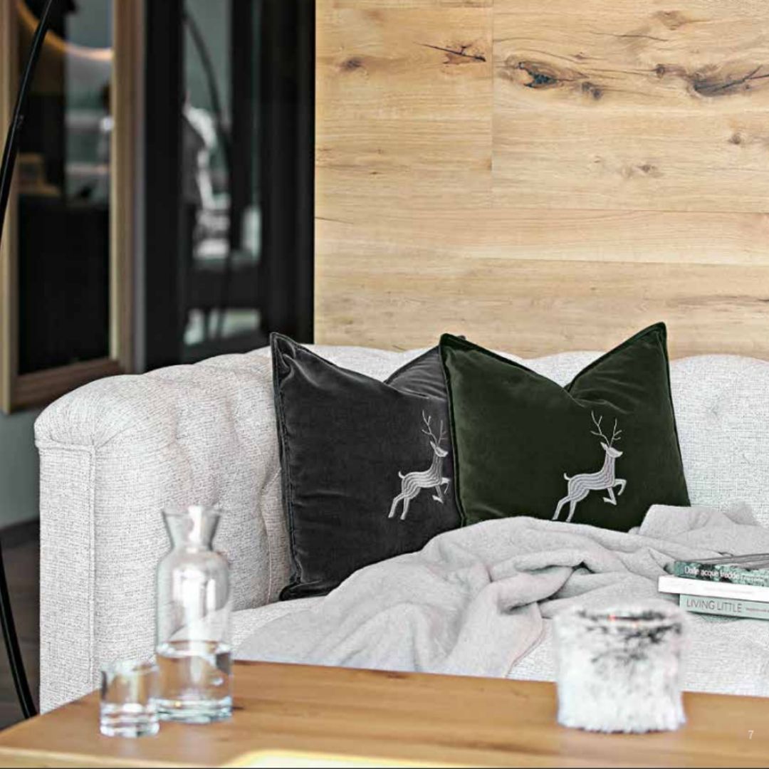 Esplora l’eleganza e la raffinatezza della montagna con il nostro Cuscino Mod. Velvetdeer in velluto, arricchito dal suggestivo ricamo di un cervo. Questo cuscino non รจ solo un semplice accessorio decorativo; รจ un’opera d’arte tessile che infonde l’atmosfera accogliente delle Alpi direttamente nella tua casa.