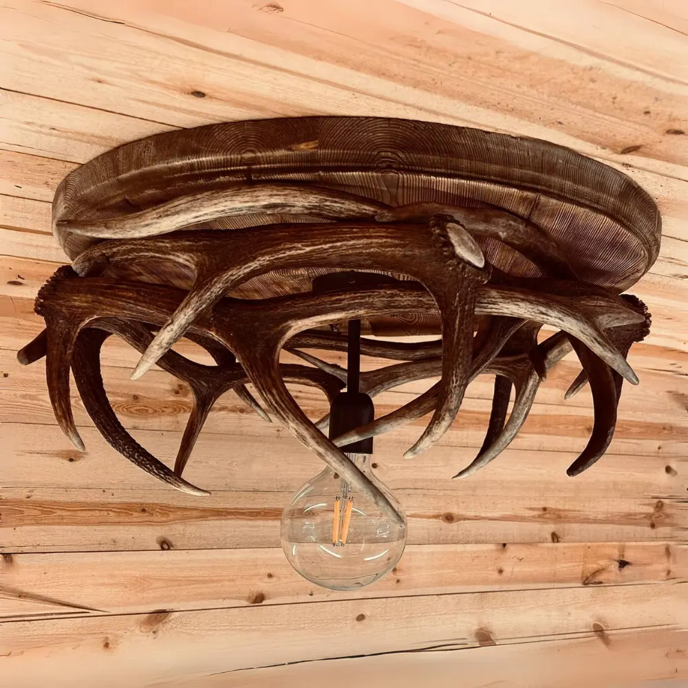 Con un diametro di ∅ 60 cm e un’altezza di 30 cm, la Deer L15 domina lo spazio con la sua presenza imponente. Ogni pezzo è unico, poiché i palchi di cervo sono raccolti dopo la naturale muta degli animali, garantendo un carattere distintivo e autentico a ogni lampada.