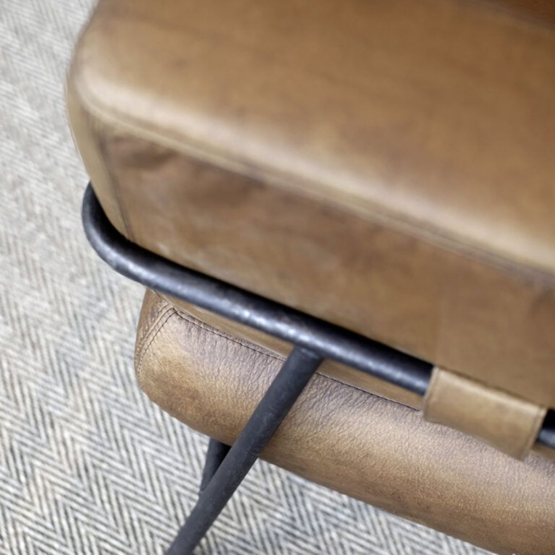 La struttura della poltrona Sinclair combina la robustezza del ferro nero con la leggerezza del legno strutturale, mentre l’imbottitura in schiuma garantisce un comfort senza eguali. La pelle di bufalo, lavorata da artigiani esperti con metodi tradizionali, dona a ogni poltrona un carattere unico e una qualità ineguagliabile.