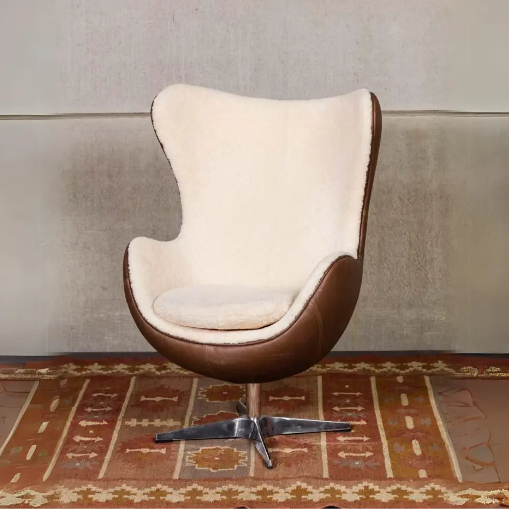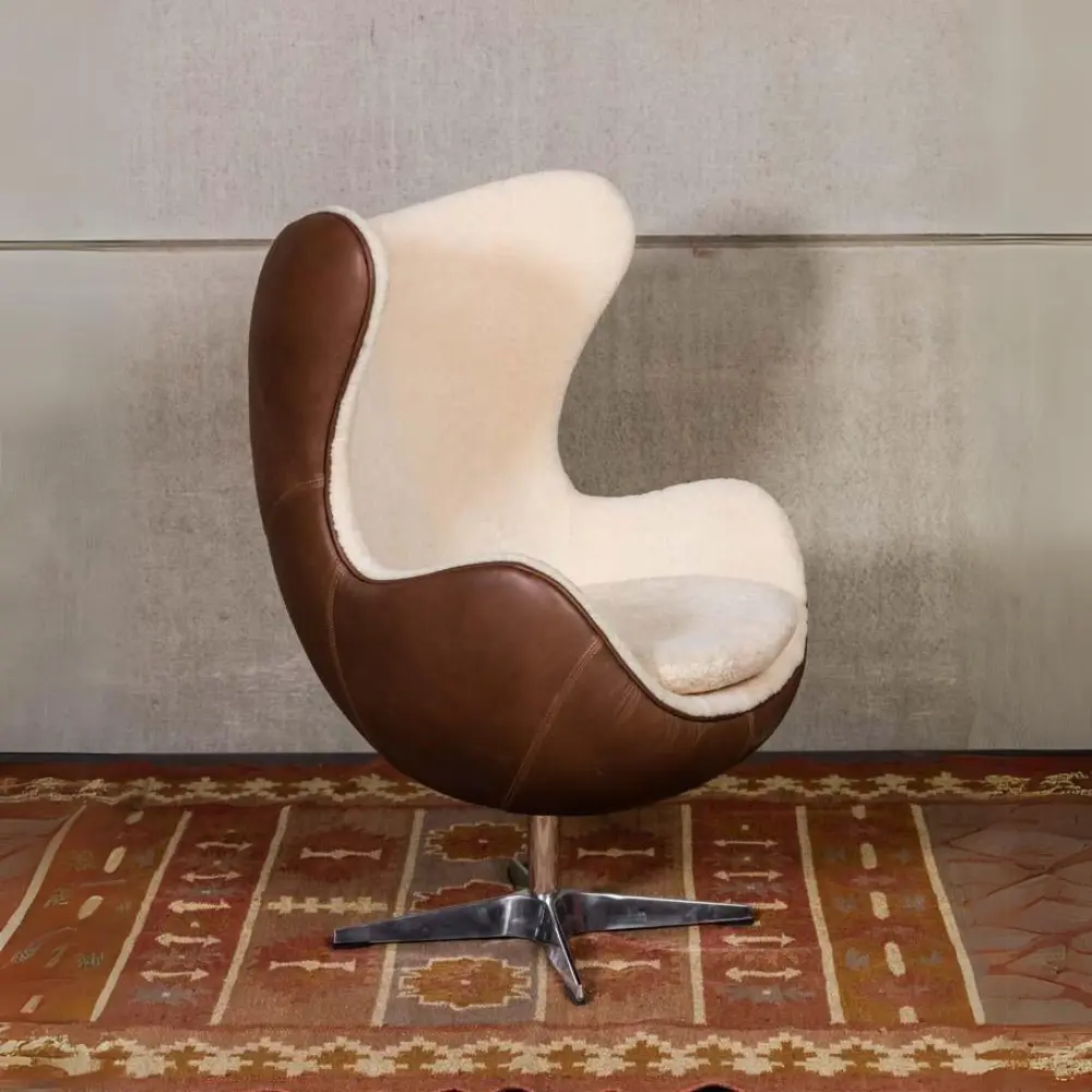 • Poltroncina uovo in pelle e pelliccia
