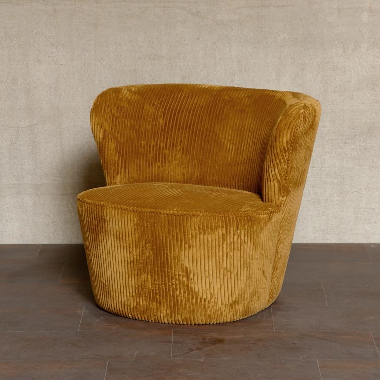 Poltroncina Dandy dal gusto vintage con rivestimento in velluto a coste color senape. Mettila in salotto per aggiungere una seduta e ospitare un amico in più, oppure utilizzala in camera da letto per leggere. Le sue dimensioni ridotte permettono di occupare poco spazio, inoltre le sue forme rendono la piccola poltrona Dandy estremamente versatile!