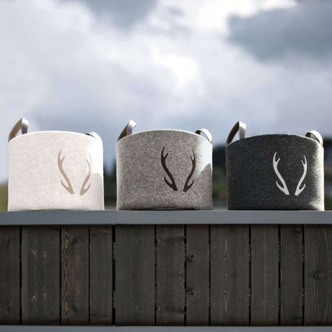 La cesta portalegna mod. Antler, realizzata artigianalmente in feltro di lana naturale, rappresenta una soluzione di design versatile ed ecosostenibile per la casa. Disponibile in una varietร  di colorazioni, si adatta con eleganza a qualsiasi ambiente, offrendo una soluzione pratica ed esteticamente piacevole per contenere legna, riviste o altri oggetti. L’aggiunta di un manico in cuoio e di un decoro di corna stilizzate ricamate, arricchiscono il design con un tocco di naturalezza e raffinatezza.