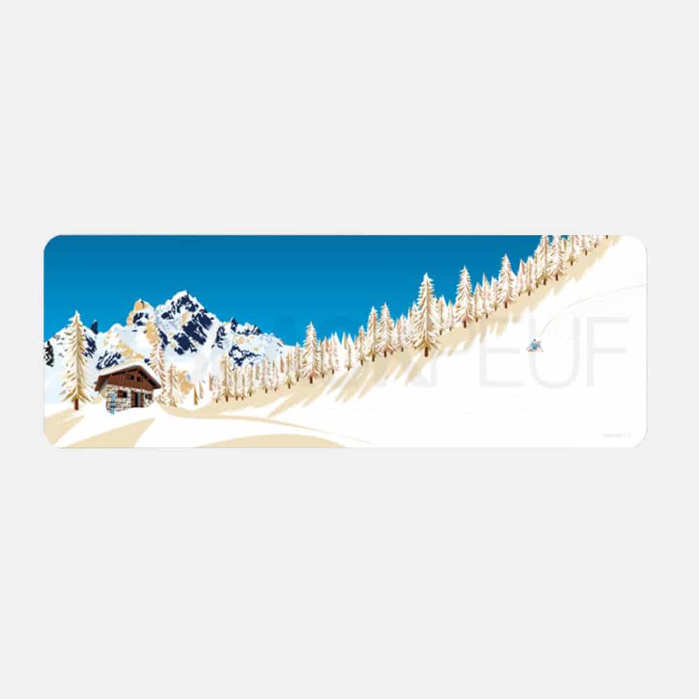 Aggiungi un tocco di avventura al tuo spazio con il quadro Au pied des pistes, che raffigura un rifugio ai piedi delle piste. Questo quadro rettangolare con angoli arrotondati è realizzato con inchiostri anti-UV su pannello in Forex, un materiale resistente e leggero.
