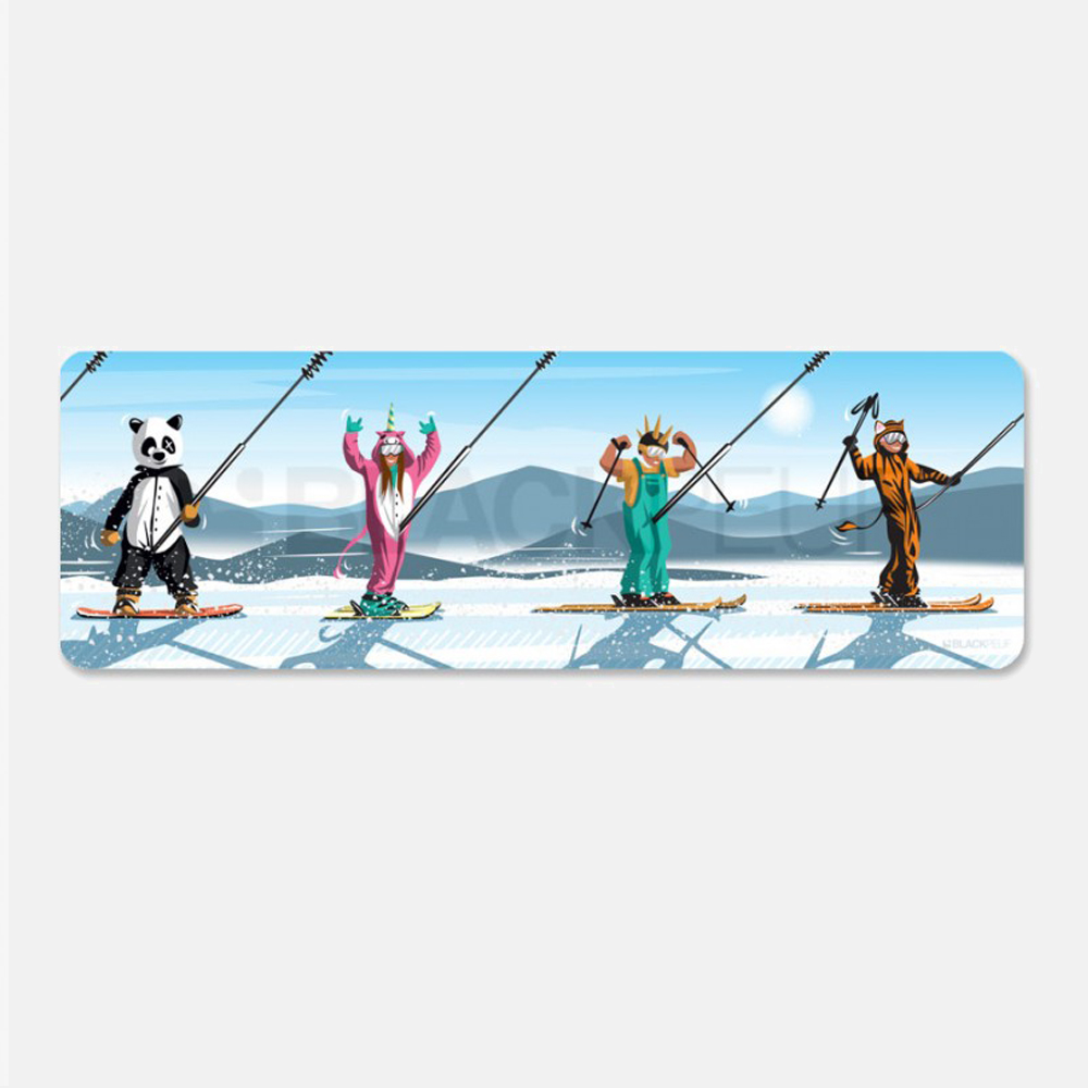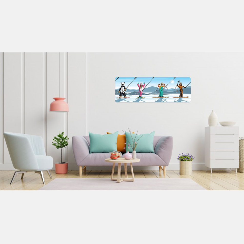 Aggiungi un tocco di avventura al tuo spazio con il quadro Kigurumi today, che raffigura un gruppo di sciatori vestiti in modi bizzarri ed originali. Questo quadro rettangolare con angoli arrotondati è realizzato con inchiostri anti-UV su pannello in Forex, un materiale resistente e leggero.