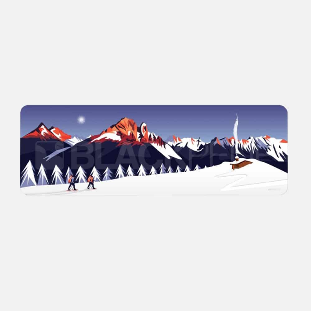 Aggiungi un tocco di avventura al tuo spazio con il quadro L’arrivée au refuge, che raffigura l’arrivo di due escursionisti ad un rifugio. Questo quadro rettangolare con angoli arrotondati è realizzato con inchiostri anti-UV su pannello in Forex, un materiale resistente e leggero.