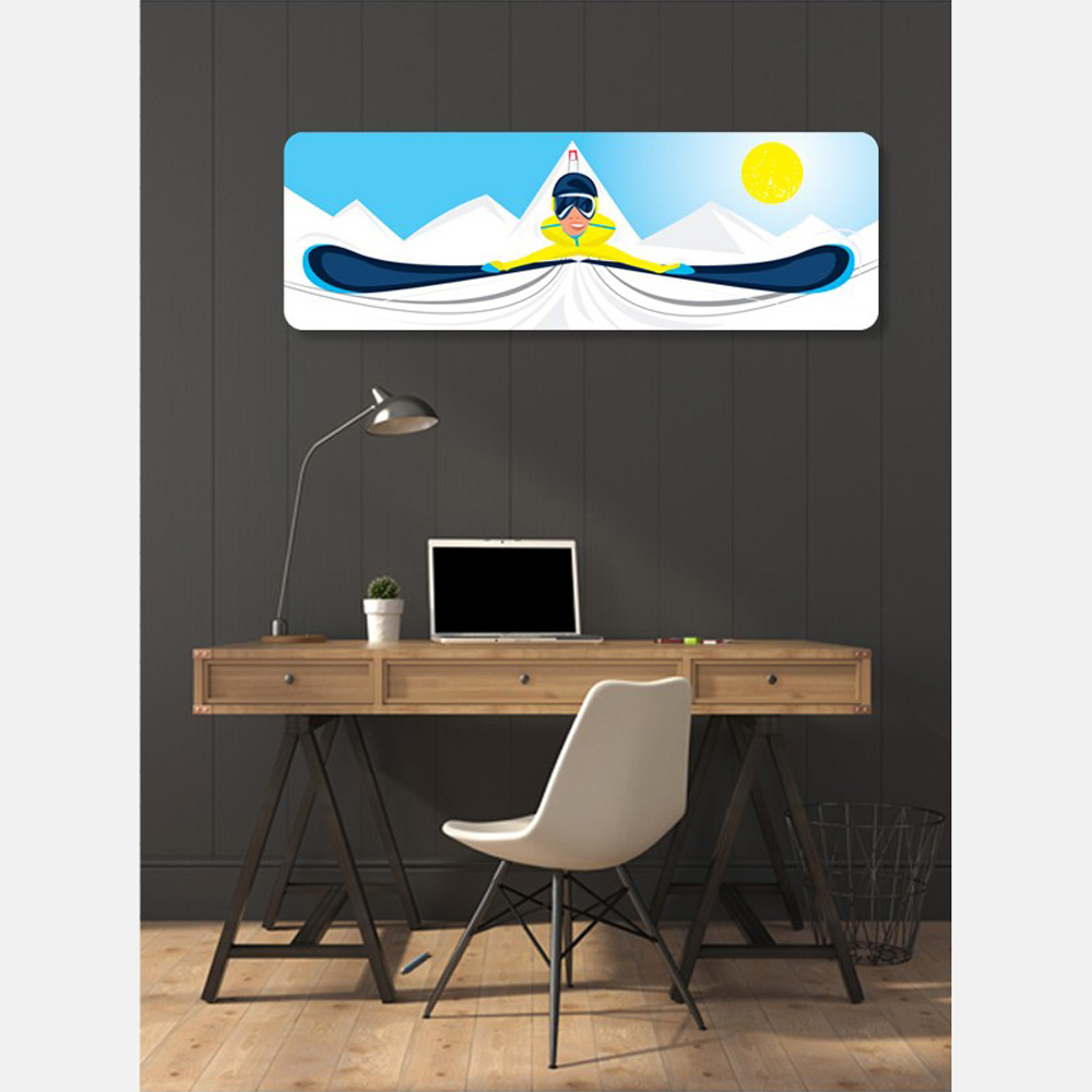 Aggiungi un tocco di avventura al tuo spazio con il quadro Le Grand Tremplin, che raffigura uno sciatore intento a lanciarsi da un trampolino. Disponibile in due color: Giallo o Rosso. Questo quadro rettangolare con angoli arrotondati è realizzato con inchiostri anti-UV su pannello in Forex, un materiale resistente e leggero.