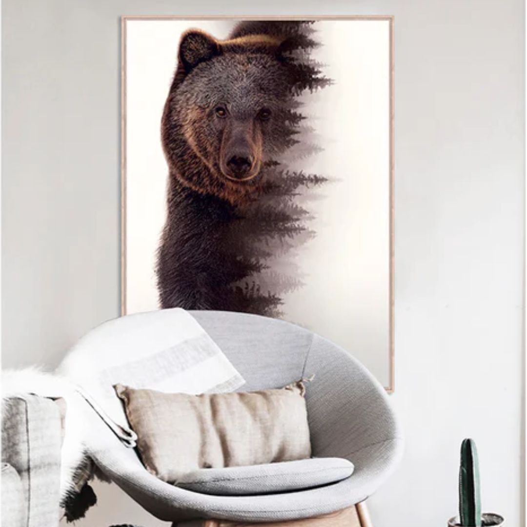 Questo quadro immortala un orso bruno, uno degli animali più maestosi e grandiosi della fauna selvatica. La vivacità dei colori e la cura dei dettagli, uniti ad una cornice americana beige, rendono questo quadro una scelta perfetta per decorare ogni tipo di ambiente, dalla casa di montagna al loft urbano.