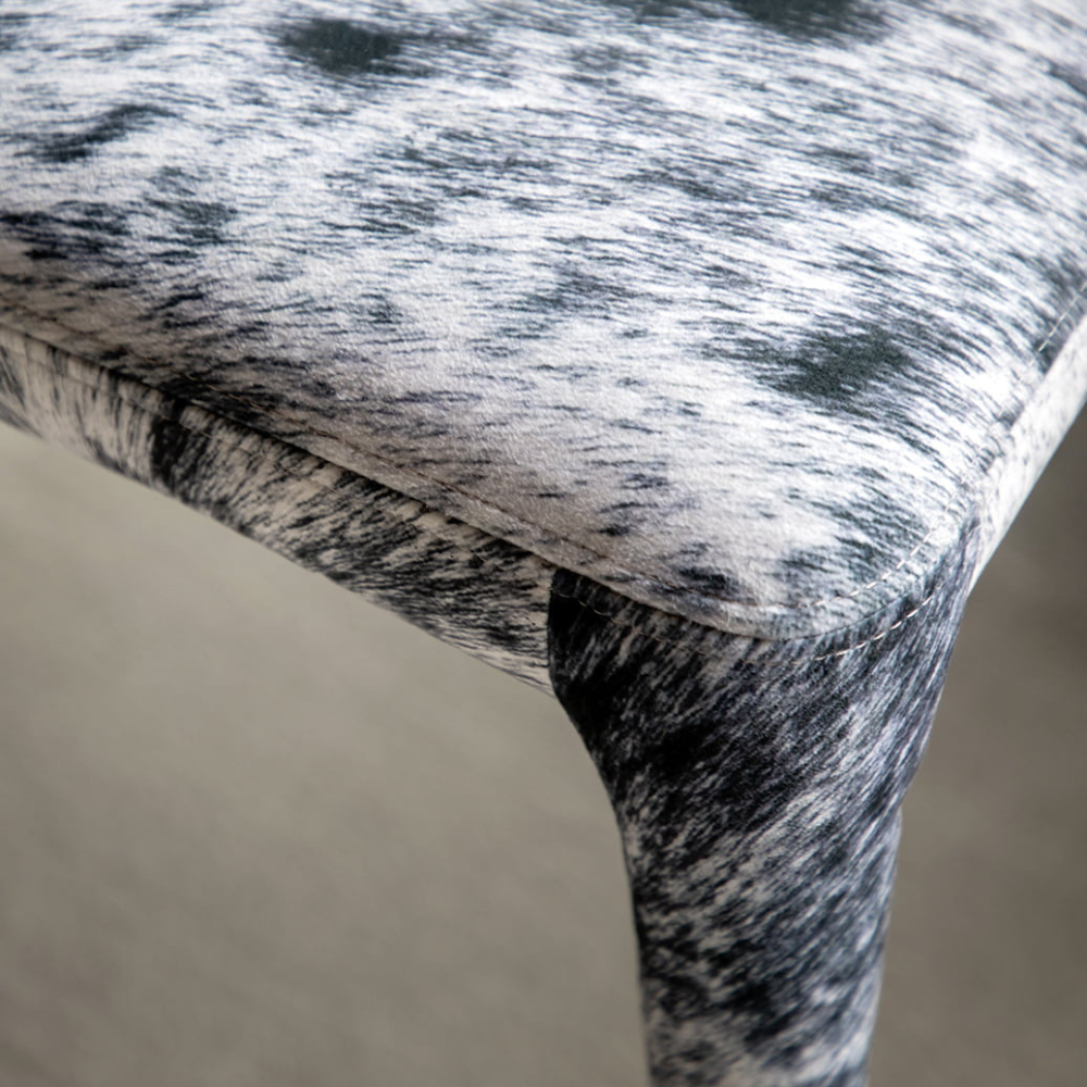 • Sedia rivestita in tessuto effetto mucca