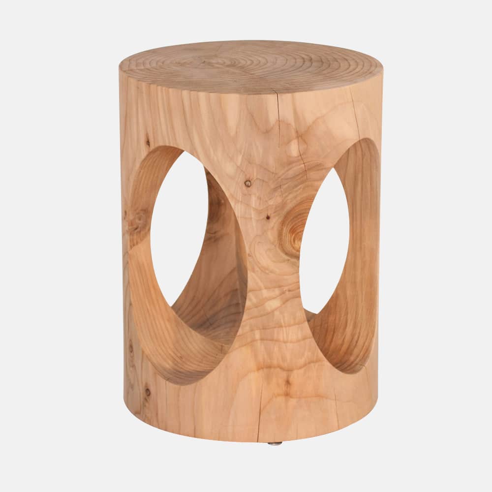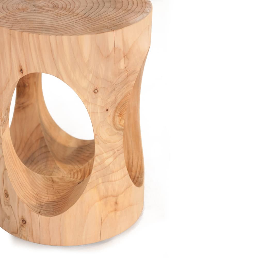 Sgabello in legno massello di cedro profumato lavorato da un blocco unico, si ispira al classici sgabelli africani, tradizionalmente ottenuto scavando un blocco di legno di karitรจ. E’ completamente naturale e rifinito a mano senza l’aggiunta di alcun trattamento.