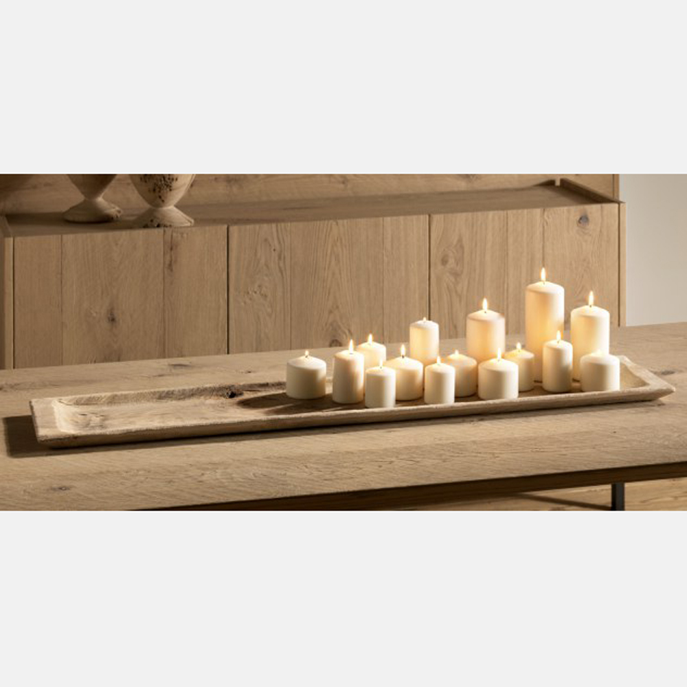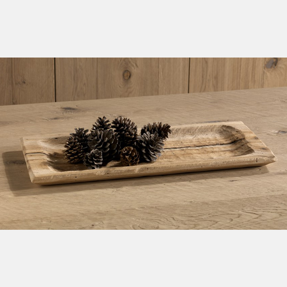 Vassoio lavorato a mano, ricavato da un unico pezzo di legno massello. Disponibile in due dimensioni in essenza rovere, cedro od olmo.